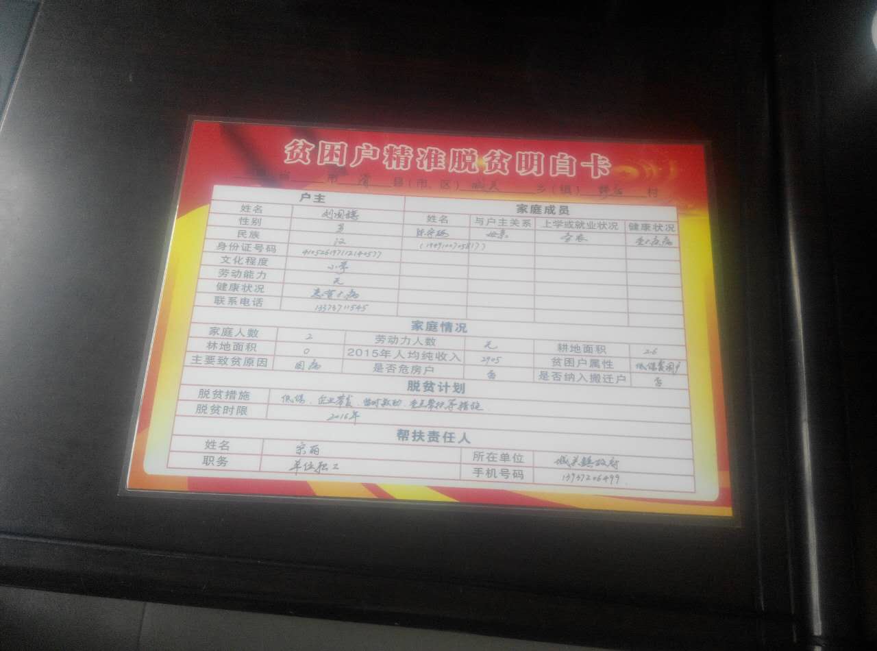 同时开展宣传扶贫政策,了解贫困户最真实的想法,对贫困户做到底数清、情况明,“卡片起到桥梁纽带作用,使群众找干部容易,干部服务群众也更加方便。”