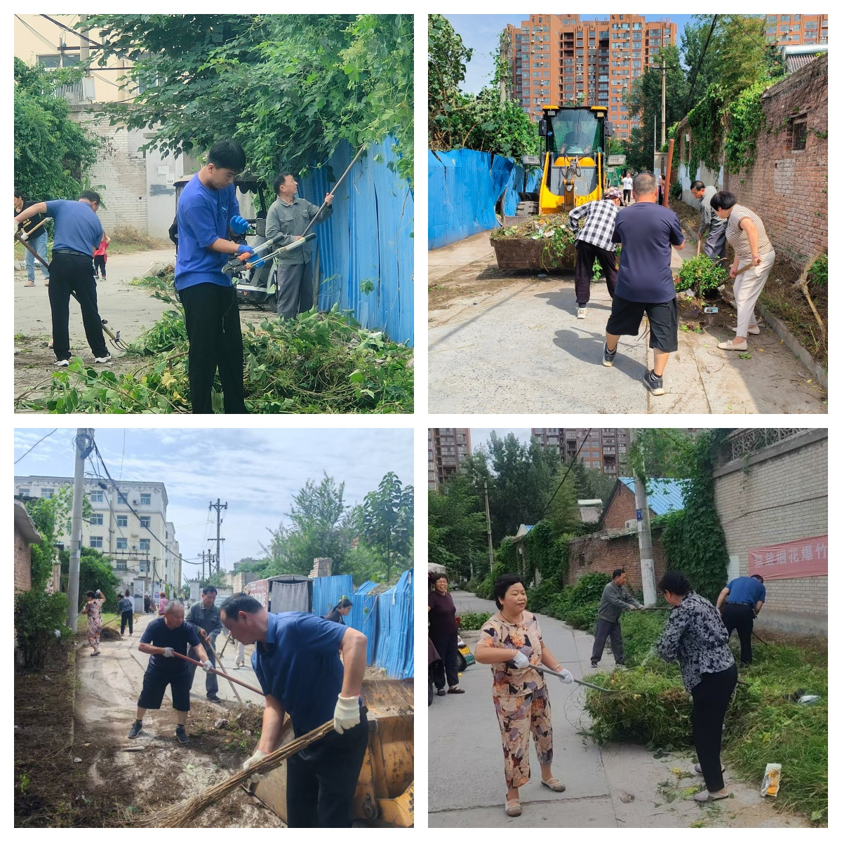 清理过程中,“两委”干部带头冲锋在前,网格员按照分片负责的原则,有序引导居民分工协作,居民们也干劲十足,有的弯腰拔除杂草,有的合力清运枯枝败叶,有的配合推土机清理顽固杂物,整个现场分工明确、默契配合,呈现出一派热火朝天的劳动景象。经过数小时的共同奋战,小区道路两侧的杂草、垃圾被彻底清除,路面环境焕然一新。