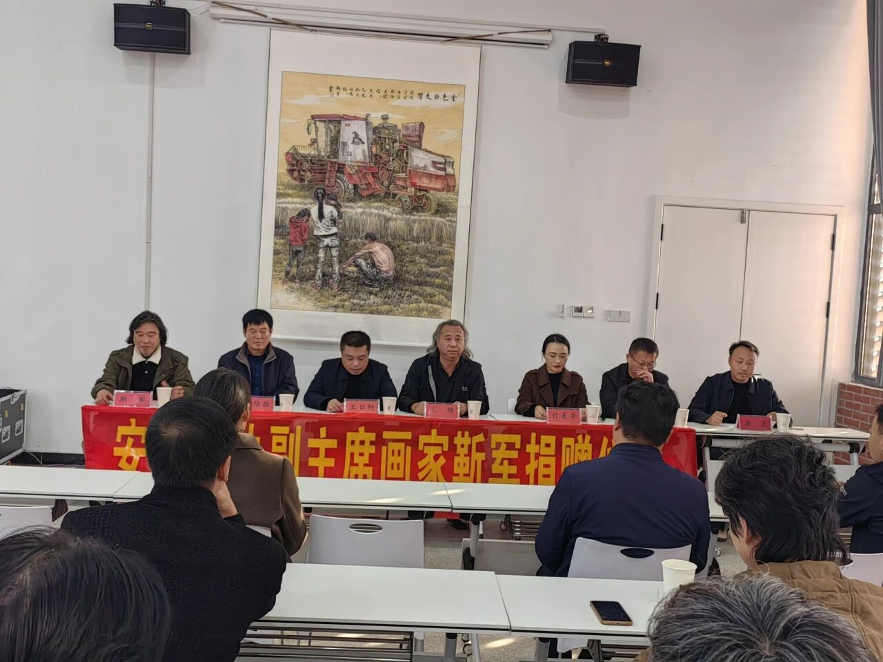 捐赠仪式上,靳军先生表示“作为枣村人,我在枣村有着重要的生活学习和创作经历,这片土地不仅承载着我的成长记忆,更滋养了我的艺术生命。此次捐赠作品,既是出于对故乡的深厚情感和热爱,也希望能为枣村的文化建设尽绵薄之力。这幅画作凝聚着我对本土生活的感悟,期待它能丰富家乡的艺术收藏,促进书画艺术的交流与传播,让更多家乡父老感受到艺术的魅力。并通过文化反哺家乡,树立公益典范,倡导更多的人关注和支持枣村的发展,为家乡注入新的文化活力。”