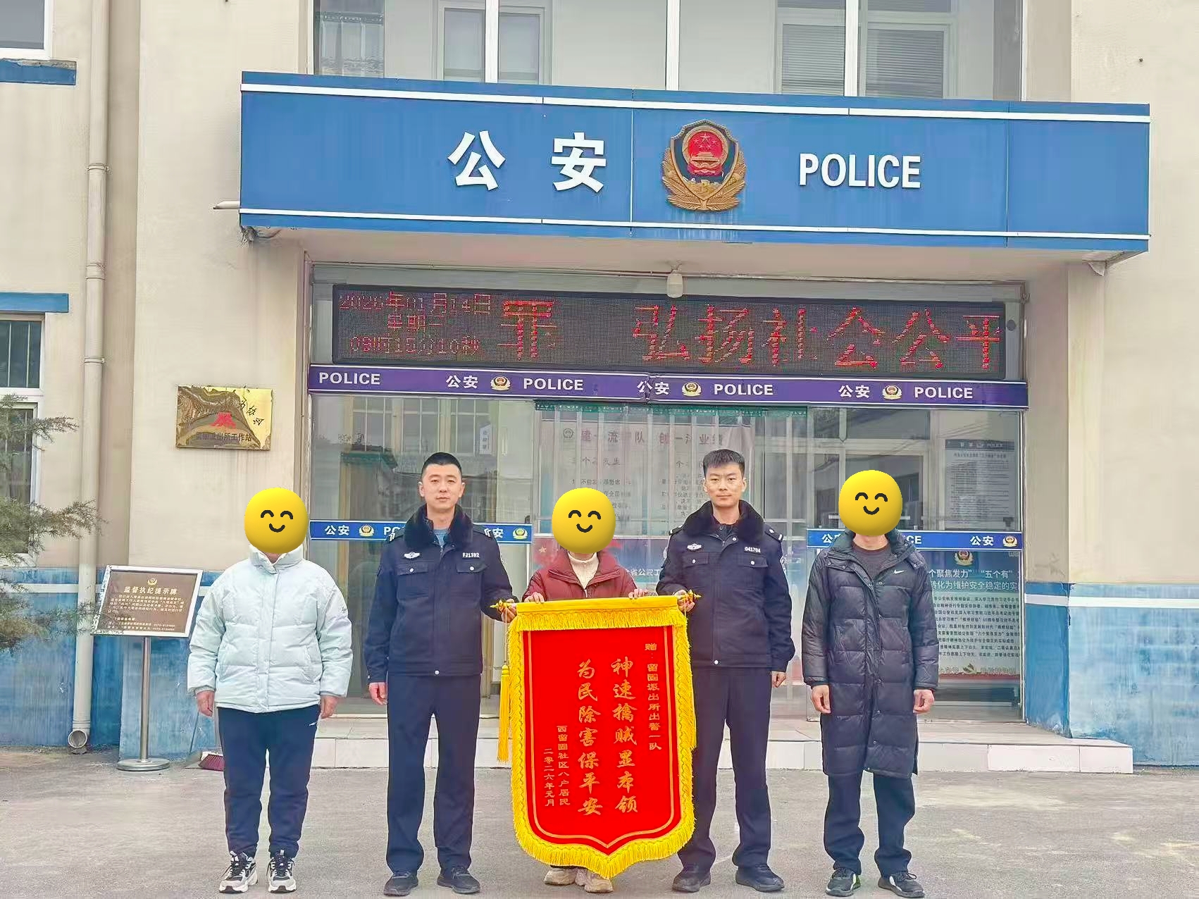 1月14日,受害群众代表自发来到留固派出所,将一面锦旗送到民警手中,激动地说:“真没想到案子这么快就能破,更没想到我们的损失能全部追回,还帮我们小区装上了新监控,太感谢你们了!”