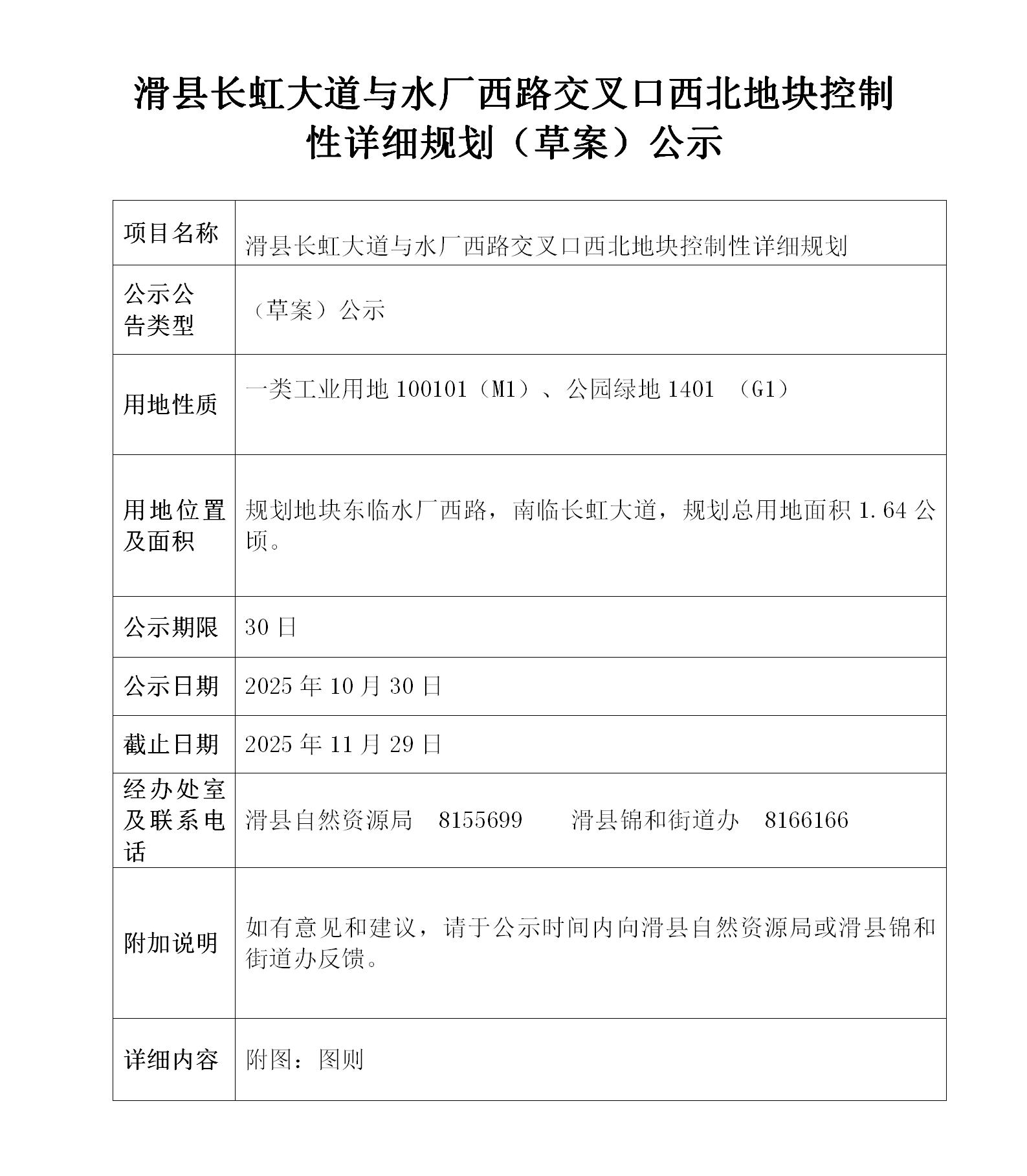 滑县长虹大道与水厂西路交叉口西北地块控制性详细规划(草案)公示