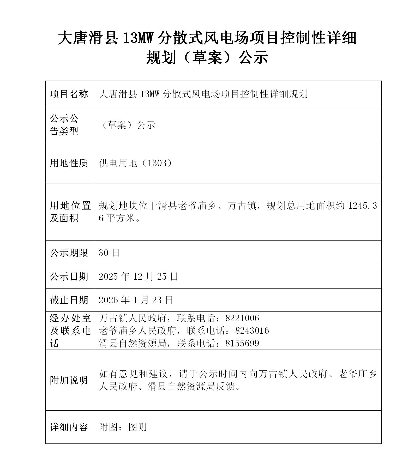 大唐滑县13MW分散式风电场项目控制性详细规划(草案)公示