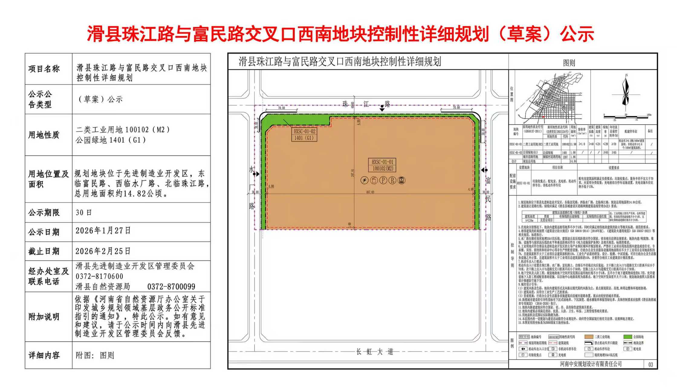 滑县珠江路与富民路交叉口西南地块控制性详细规划(草案)公示